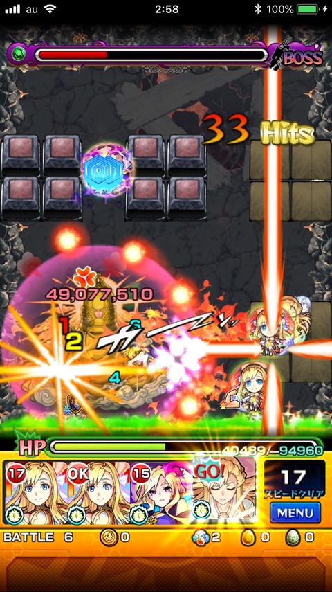 1個クリアするのに1日かかる。 でも一度クリアできるようになると次は割と早かったりする。 これはモンスト力が高まっているのか!? あんまり嬉しくはないが。 ここは割と楽だったかも。 マナがね。 強すぎたからね。 ルシファーもなんだかんだとダメージウォールで強かったし。 ここをマナもルシもない人はどうやってクリアしたらいいの?