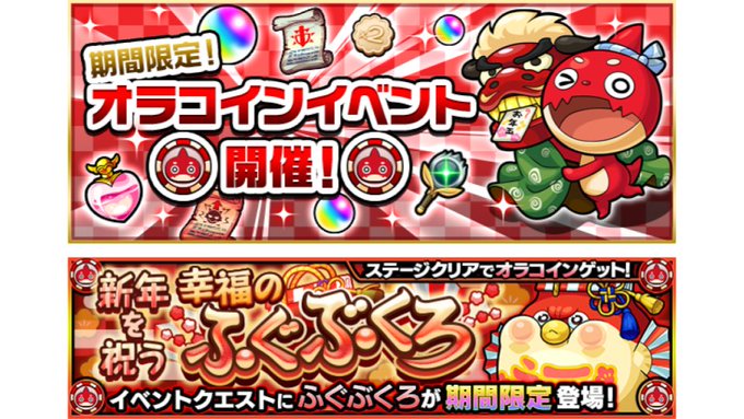 クエストクリアで、お正月仕様のキャラやアイテムと引き換えができる「オラコイン」GET!
