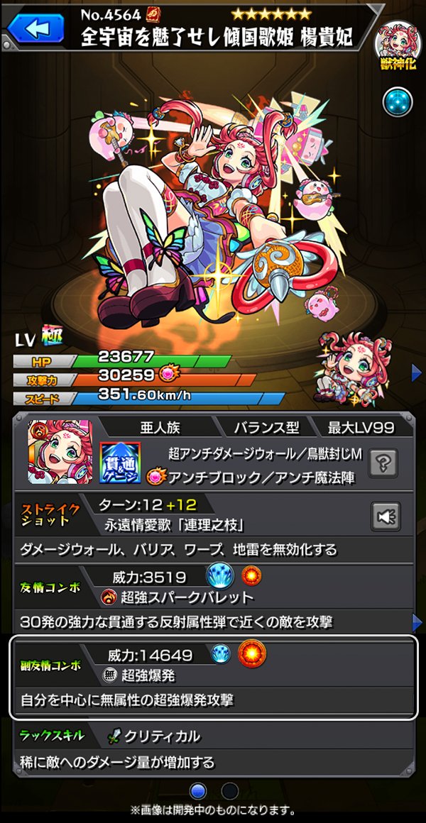 進化スピード型、神化砲撃型の楊貴妃、獣神化で何故かバランス型に ← 超戦型のせいで無理矢理バランス型にされてしまった・・・?@ モンスト獣神日和